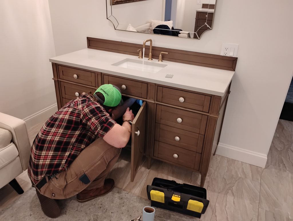 We remove your old vanity, protect adjacent surfaces, install the new unit with precision, and handle disposal if requested.